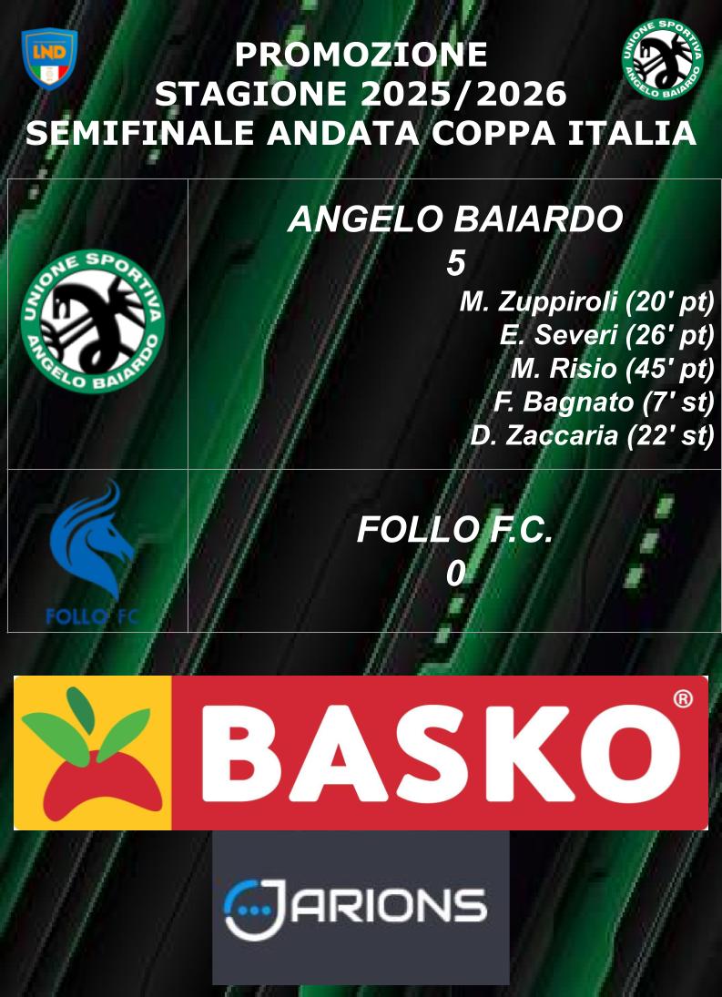 Il Baiardo riscatta nel migliore dei modi la sconfitta di domenica scorsa, battendo il Follo con un perentorio 5-0 nella semifinale di andata di Coppa Italia.