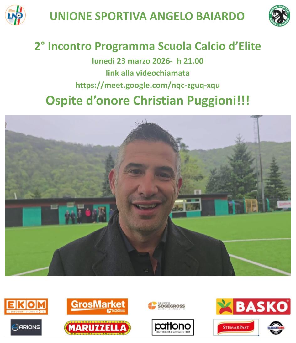 ⚫🟢🐉 Nell'ambito del progetto SCUOLA CALCIO ÉLITE, domani sera alle 21,00, il @u.s.d.angelobaiardo1946 avrà il piacere di avere ospite on line CRISTIAN PUGGIONI, Responsabile del settore giovanile della Sampdoria⚽⚫🟢🐉