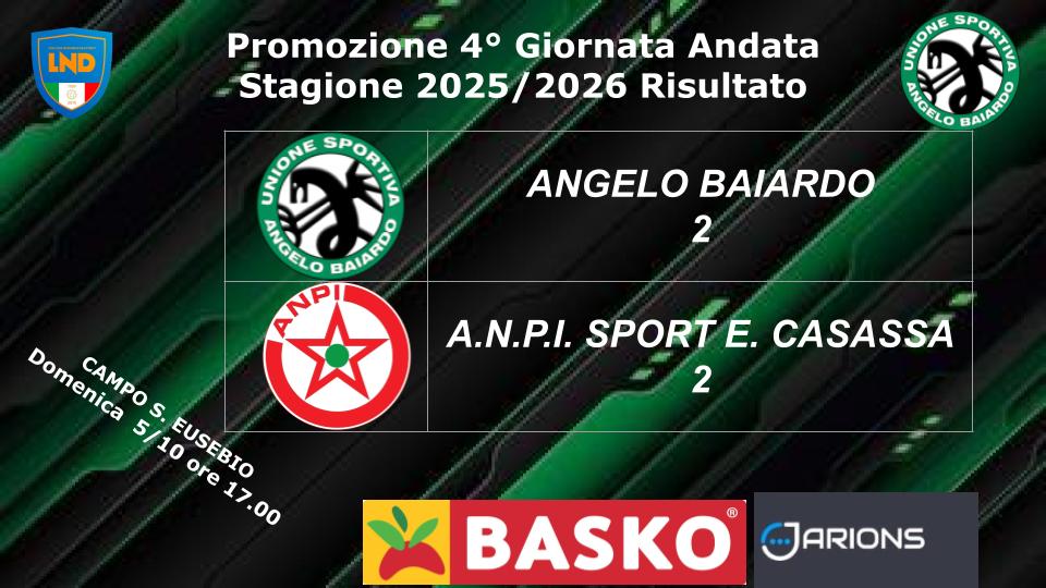 Pareggio con reti nel derby tra il Baiardo e l'Anpi Casassa, che si dividono la posta in palio per 2-2.
